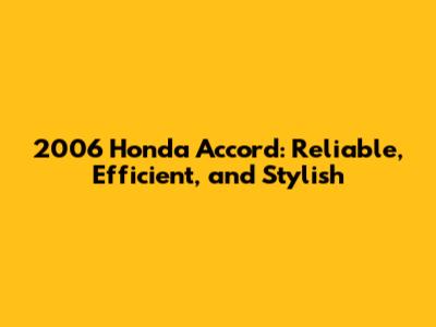 2006 Honda Accord: Reliable, Efficient, And Stylish