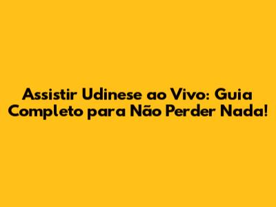 Assistir Udinese Ao Vivo: Guia Completo E Atualizado