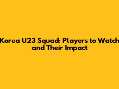 Korea U23 Squad: Players To Watch And Their Impact