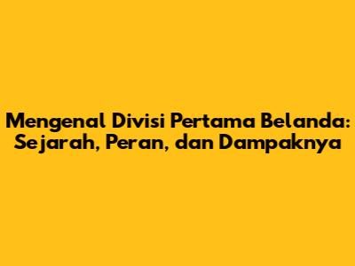 Mengenal Divisi Pertama Belanda: Sejarah, Peran, Dan Dampaknya