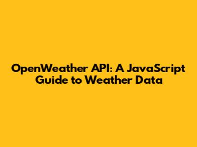 OpenWeather API: A JavaScript Guide To Weather Data