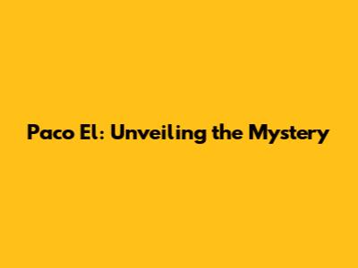 Paco El: Unveiling the Mystery