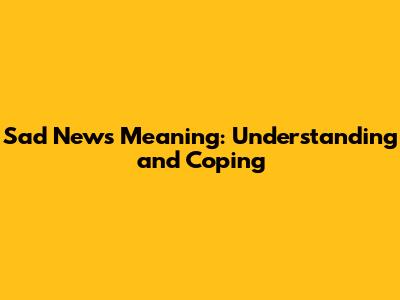 Sad News Meaning: Understanding And Coping