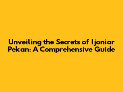 Unveiling The Secrets Of Ijoniar Pekan: A Comprehensive Guide