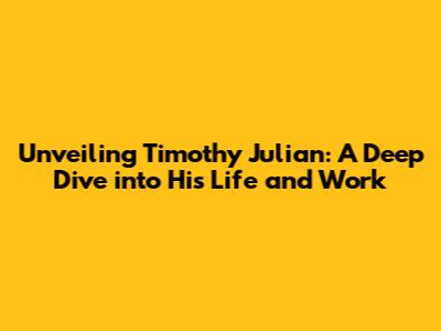 Unveiling Timothy Julian: A Deep Dive Into His Life And Work