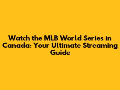 Watch The MLB World Series In Canada: Your Ultimate Guide